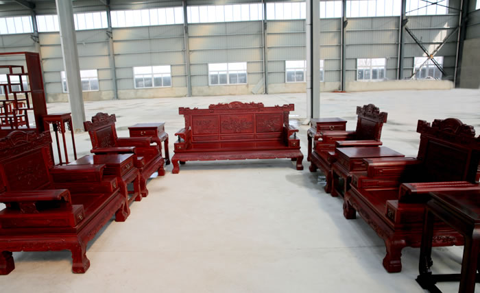 江蘇中尊木業(yè)有限公司客廳系列產品:博古架、皇冠圈椅三件套、皇冠圈椅三件套、如意茶桌六件套、如意供枱、沙發(fā)十件套、組合電視柜等。